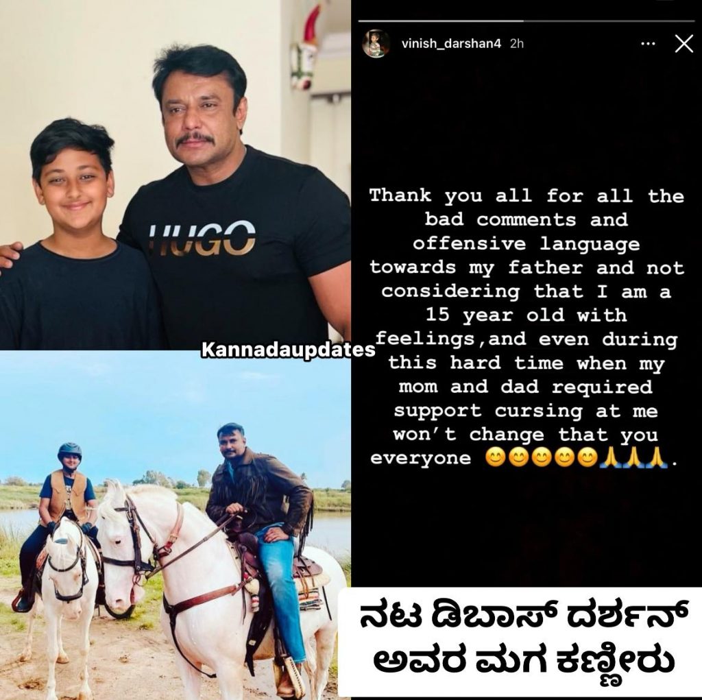 ನಟ ದರ್ಶನ್ ಪ್ರಕರಣ: ದಚ್ಚು ಪುತ್ರ ವಿನೀಶ್ನ ಮೊದಲ ಪ್ರತಿಕ್ರಿಯೆ