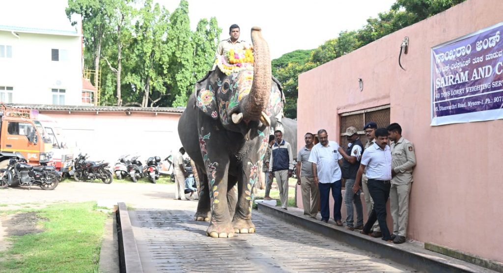 ಮೈಸೂರು ದಸರಾ ಗಜಪಡೆಯ ತೂಕ ಪರೀಕ್ಷೆ: ಕ್ಯಾಪ್ಟನ್ ಪಟ್ಟ ಉಳಿಸಿಕೊಂಡ ಅಭಿಮನ್ಯು