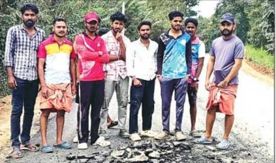 ಮಚ್ಚೂರು ಬಳಿ ಕಿತ್ತುಬರುತ್ತಿದ್ದ ಡಾಂಬರನ್ನು ತೋರಿಸಿ ಅಧಿಕಾರಿಗಳು, ಗುತ್ತಿಗೆದಾರರ ವಿರುದ್ಧ ಆಕ್ರೋಶ