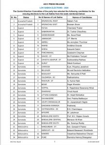 ರಾಜ್ಯದಲ್ಲಿ ಒಟ್ಟು 28 ಲೋಕಸಭಾ ಕ್ಷೇತ್ರಗಳಿದ್ದು, ಮೊದಲ ಹಂತದಲ್ಲಿ ಏಳು ಮತ್ತು ಎರಡನೇ ಹಂತದಲ್ಲಿ 17 ಕ್ಷೇತ್ರಗಳಿಗೆ ಕಾಂಗ್ರೆಸ್‌ ಅಭ್ಯರ್ಥಿಗಳನ್ನು ಆಯ್ಕೆ ಮಾಡಿದೆ. ಆದರೆ ಚಾಮರಾಜನಗರ ಸೇರಿದಂತೆ ನಾಲ್ಕು ಕ್ಷೇತ್ರಗಳಿಗೆ ಟಿಕೆಟ್ ಕಾಯ್ದಿರಿಸಿದೆ.