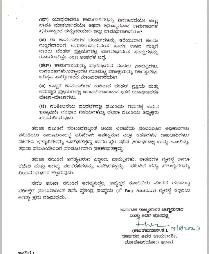 ಇನ್ನು ಕಾಮಗಾರಿಗಳ ಟೆಂಡರ್ ಪ್ರಕ್ರಿಯೆ,ಅನುಷ್ಠಾನ ಪ್ರಕ್ರಿಯೆಗಳಲ್ಲಿ ಉಂಟಾಗಿರಬಹುದಾದ ಇತರ ಯಾವುದಾದರೂ ಲೋಪದೋಷಗಳು ಬಗ್ಗೆ ಸಮಿತಿ ತನಿಖೆ ನಡೆಸಲಿದೆ.