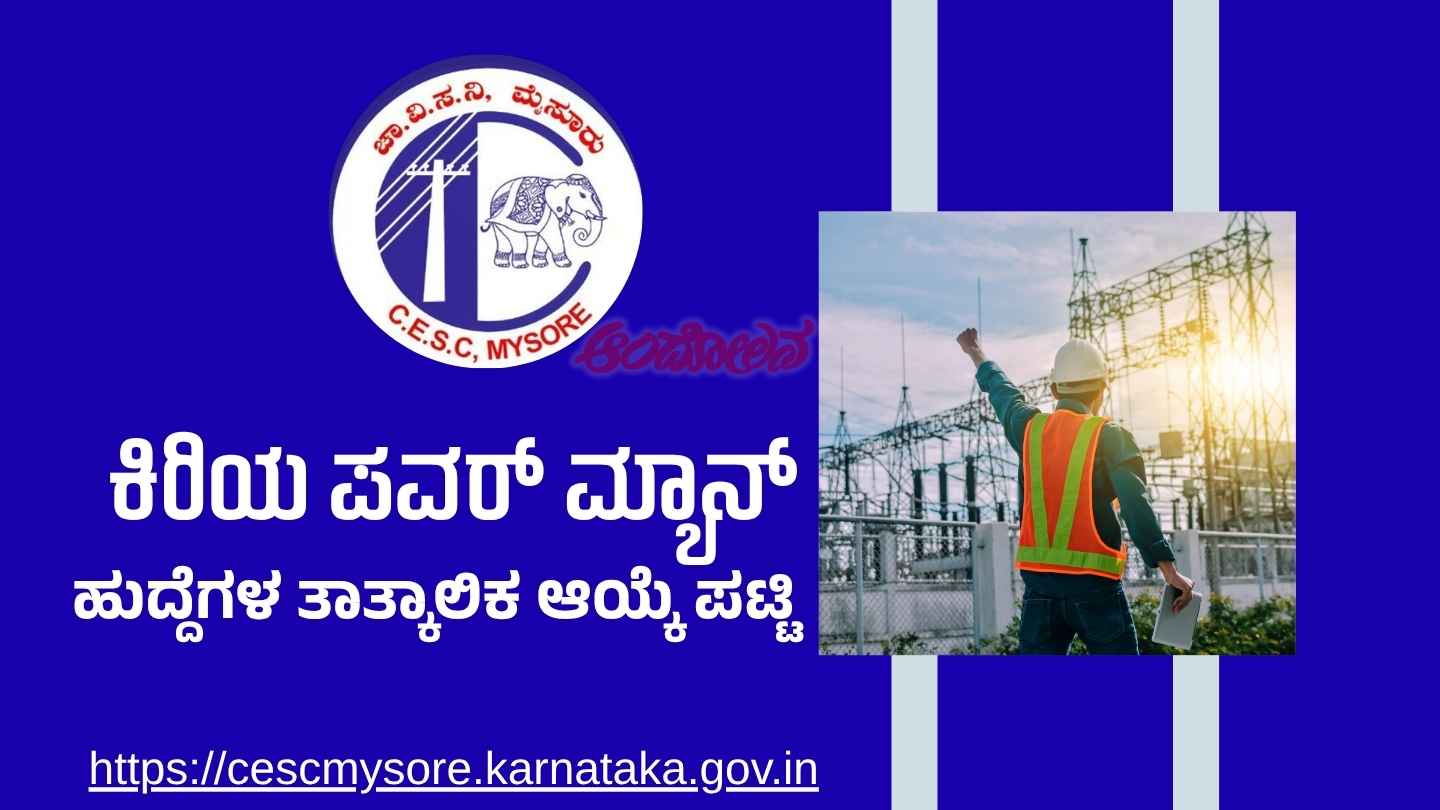 ಮೈಸೂರು : ಚಾಮುಂಡೇಶ್ವರಿ ವಿದ್ಯುತ್ ಸರಬರಾಜು ನಿಗಮ ನಿಯಮಿತ(ಸೆಸ್ಕ್)ದ ಕಿರಿಯ ಪವರ್ ಮ್ಯಾನ್(ಎನ್ಕೆಕೆ) ಹುದ್ದೆಗಳಿಗೆ ಆಯ್ಕೆಯಾಗಿರುವ ಅಭ್ಯರ್ಥಿಗಳ ತಾತ್ಕಾಲಿಕ ಆಯ್ಕೆ ಪಟ್ಟಿಯನ್ನು ಚಾವಿಸನಿನಿ ಅಂತರ್ಜಾಲ(ವೆಬ್ಸೈಟ್) ದಲ್ಲಿ ಪ್ರಕಟಿಸಲಾಗಿದೆ. ಇದನ್ನು ಓದಿ: ಹುದ್ದೆಗಳಿಗೆ ಅರಣ್ಯ ಶಾಸ್ತ್ರ ಪದವೀಧರರನ್ನೇ ಪರಿಗಣಿಸಿ 14-10-2024ರ ಉದ್ಯೋಗ ಪ್ರಕಟಣೆಗೆ ಅನುಗುಣವಾಗಿ …