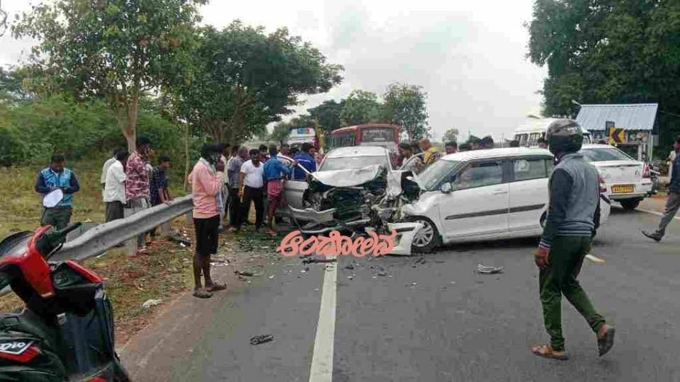 ಶಾಗ್ಯದಿಂದ ಮೈಸೂರು ಕಡೆಗೆ ಹೋಗುತ್ತಿದ್ದ ಜಯಂತ್ ಕಾರಿಗೆ ಮೈಸೂರಿನಿಂದ ಕೊಳ್ಳೇಗಾಲದ ಹಂಪಾಪುರದಲ್ಲಿ ಲೇಔಟ್ ವೀಕ್ಷಣೆ ಬರುತ್ತಿದ್ದ ಮೂವರಿದ್ದ ಕಾರಿನ ನಡುವೆ ಈ ಅಪಘಾತ ಉಂಟಾಗಿದೆ. ಈ ಸಂಬಂಧ ಅಗರ-ಮಾಂಬಳ್ಳಿ ಪೊಲೀಸ್ ಠಾಣೆಯ ಎಸ್ಐ ಕರಿಬಸಪ್ಪ ಸ್ಥಳಕ್ಕೆ ಭೇಟಿ ನೀಡಿ ಪರಿಶೀಲಿಸಿ, ವಾಹನ ಜಪ್ತಿ ಮಾಡಿ ಪ್ರಕರಣ ದಾಖಲಿಸಿಕೊಂಡಿದ್ದಾರೆ.
