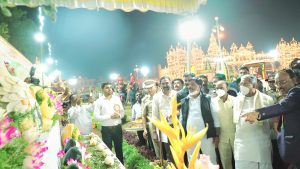 ಅರಮನೆ ಅನೆಗಳಿಂದ ನಾಲ್ವಡಿ ಕೃಷ್ಣ ರಾಜ ಒಡೆಯರು, ಕೆಂಪ ನಂಜಮ್ಮಣಿ, ಶ್ರಿ ಕಂತ ದತ್ತ ಒಡೆಯರ್ ಪ್ರತಿಮೆಗಳಿಗೆ ಪುಷ್ಪಾರ್ಚನೆ ಮಾಡಿಸಲಾಯಿತು.