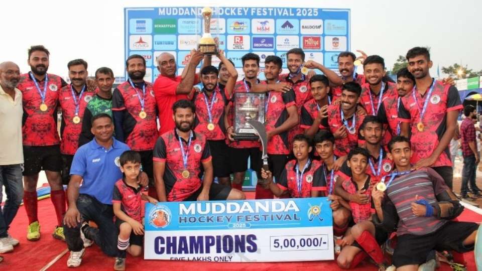 ಮಡಿಕೇರಿ : ಕೊಡವ ಕೌಟುಂಬಿಕ ‘ಮುದ್ದಂಡ ಕಪ್ ಹಾಕಿ ಉತ್ಸವ’ದ ಅಂತಿಮ ಪಂದ್ಯ ಮಳೆಯಿಂದ ಬಾಧಿತವಾಗಿ, ನಿಯಮಗಳಂತೆ ಪಂದ್ಯ ನಿಲುಗಡೆಗೂ ಮುನ್ನ ಏಕೈಕ ಗೋಲಿನ ಮುನ್ನಡೆ ಪಡೆದಿದ್ದ ‘ಮಂಡೇಪಂಡ’ ತಂಡವನ್ನು ವಿಜಯಿ ಎಂದು ಘೋಷಿಸಲಾಯಿತು. ಬೆಳ್ಳಿ ಮಹೋತ್ಸವದ ಪಂದ್ಯಾವಳಿಯ ಚಾಂಪಿಯನ್ ಪಟ್ಟವನ್ನು ಮಂಡೇಪಂಡ ಅಲಂಕರಿಸಿತು.