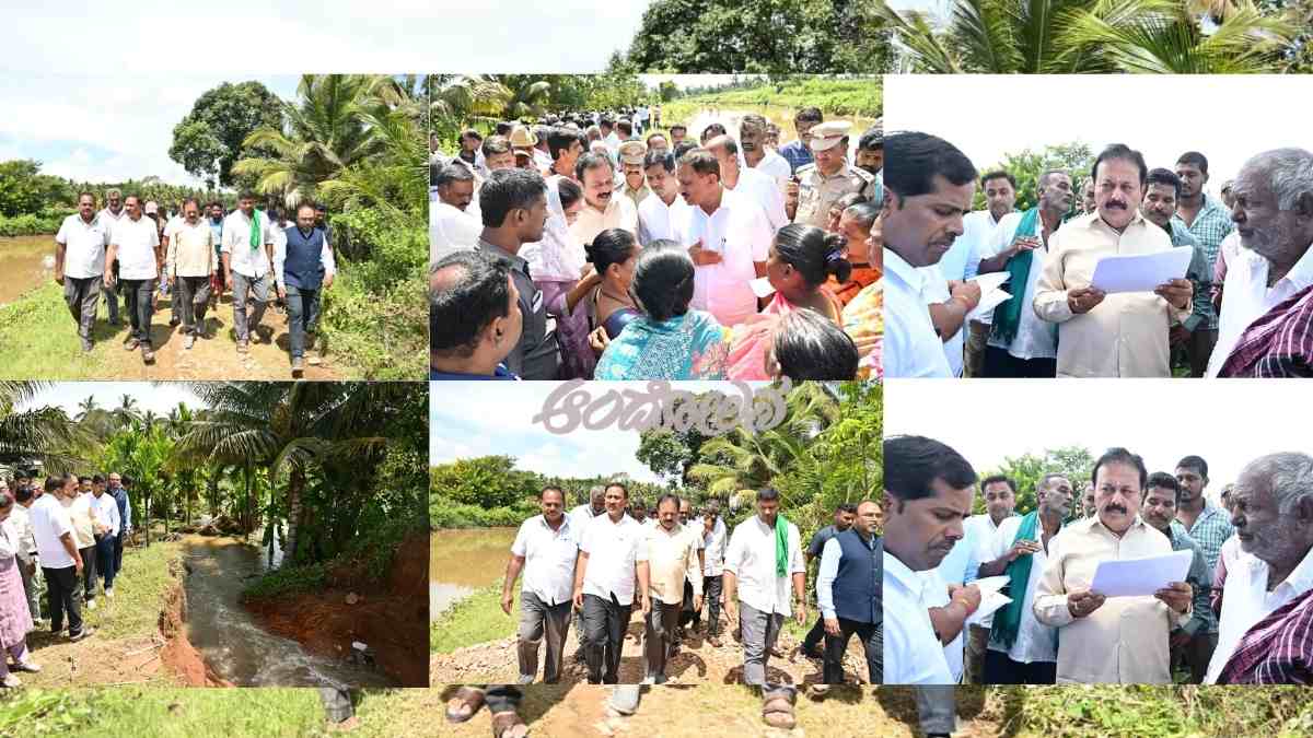 ಪರಿಶೀಲನೆ ನಡೆಸಿ ಮಾತನಾಡಿದ ಅವರು, ಭಾರೀ ಮಳೆಯಾಗಿರುವುದರಿಂದ ಸಿ.ಡಿ.ಎಸ್. ನಾಲೆ ಒಡೆದು ಕೃಷಿ ಬೆಳೆ ಹಾಗೂ ತೋಟಗಾರಿಕೆ ಬೆಳೆ ಹಾನಿಯಾಗಿದೆ. ಮಳೆ ನಿಂತ ನಂತರ ಜಂಟಿ ಸರ್ವೆ ಕಾರ್ಯಾಚರಣೆ ನಡೆಸಿ ಯಾರ ಬೆಳೆ ಎಷ್ಟು ಹಾನಿಯಾಗಿದೆ ಎಂದು ತಿಳಿದುಕೊಂಡು ಅಂದೇ ಪರಿಹಾರಕ್ಕೆ ಪ್ರಸ್ತಾವನೆ ಸಲ್ಲಿಸಲಾಗುವುದು. ಸರ್ವೆ ನಂತರವೇ ಎಷ್ಟು ಎಕರೆ ಕೃಷಿ ಹಾಗೂ ತೋಟಗಾರಿಕೆ ಬೆಳೆ ಹಾನಿಯಾಗಿದೆ ಎಂದು ತಿಳಿಯುತ್ತದೆ ಎಂದು ತಿಳಿಸಿದರು.