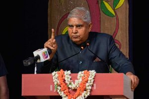 ಸಂವಾದಲ್ಲಿ ವಿದ್ಯಾರ್ಥಿಗಳನ್ನುದ್ದೇಶಿಸಿ ಭಾಷಣ ಮಾಡುತ್ತಿರುವ ಉಪ ರಾಷ್ಟ್ರಪತಿ ಜಗದೀಪ್ ಧನಕರ್.