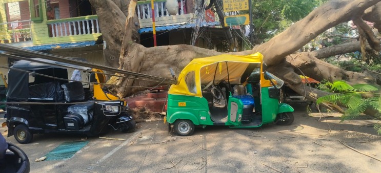 ಬೀದಿ ಬದಿ ವ್ಯಾಪಾರಿ ತಲೆಗೆ ಸಣ್ಣಪುಟ್ಟ ಗಾಯಗಳಾಗಿದ್ದು, ಹತ್ತಿರದ ಅಗಸ್ತ್ಯ ಹಾಸ್ಪಿಟಲ್ ನಲ್ಲಿ ಚಿಕಿತ್ಸೆ ಪಡೆಯುತ್ತಿದ್ದಾರೆ. ಮರವು ವಿದ್ಯುತ್ ಕಂಬದ ಮೇಲೂ ಬಿದ್ದುದ್ದರಿಂದ ಸಾರ್ವಜನಿಕರು ಗಾಬರಿಯಾಗಿ ಓಡಿ ಹೋದರು.