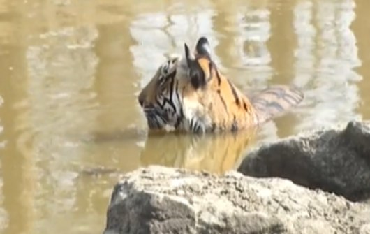 ನಾಗರಹೊಳೆ ಉದ್ಯಾನವನದಲ್ಲಿ ಹುಲಿಯೊಂದು ನೆತ್ತಿ ಸುಡುತ್ತಿರುವ ಬಿಸಿಲನ್ನು ತಾಳಲಾರದೇ ನೀರಿನಲ್ಲಿ ಮಲಗಿದೆ. ಈ ದೃಶ್ಯ ಸಫಾರಿಗೆ ತೆರಳಿದ್ದ ಪ್ರವಾಸಿಗರಿಗೆ ಸೆರೆ ಸಿಕ್ಕಿದ್ದು, ನೀರಿನಲ್ಲಿ ಆಟವಾಡುತ್ತಿರುವ ಹುಲಿಯನ್ನು ಕಂಡು ಪ್ರವಾಸಿಗರು ಫುಲ್ ಖುಷ್ ಆಗಿದ್ದಾರೆ.