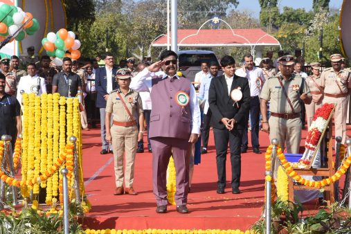 ಮೈಸೂರು: 76 ನೇ ಗಣರಾಜ್ಯೋತ್ಸವ ಆಚರಣೆ ಅಂಗವಾಗಿ ನಗರದ ಪಂಜಿನ ಕವಾಯತು ಮೈದಾನದಲ್ಲಿ ಸಮಾಜ ಕಲ್ಯಾಣ ಇಲಾಖೆ ಹಾಗೂ ಜಿಲ್ಲಾ ಉಸ್ತುವಾರಿ ಸಚಿವ ಡಾ. ಹೆಚ್ ಸಿ ಮಹದೇವಪ್ಪ ಅವರು ಧ್ವಜಾರೋಹಣ ನೆರವೇರಿಸಿದರು.