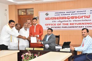 ನಗರದ ಜಿಲ್ಲಾಧಿಕಾರಿಗಳ ಕಚೇರಿಗೆ ತೆರಳಿ ಜಿಲ್ಲಾ ಚುನಾವಣಾಧಿಕಾರಿಗಳಾದ ಕೆ.ವಿ.ರಾಜೇಂದ್ರ ಅವರಿಗೆ ನಾಮಪತ್ರ ಸಲ್ಲಿಸಿದರು.