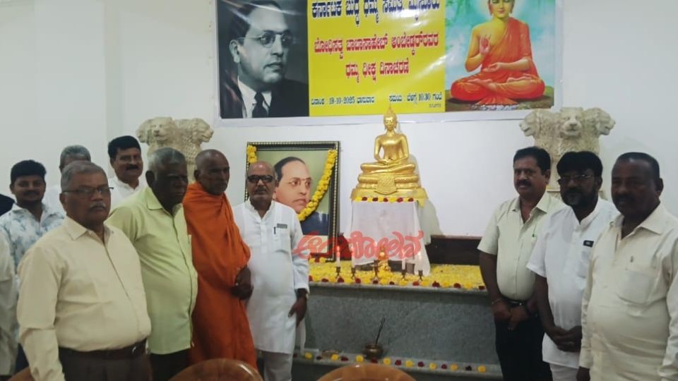 ವಿಜಯನಗರ ಒಂದನೇ ಹಂತದ ಡಿ.ಸಂಜೀವಯ್ಯ ಸ್ಮಾರಕ ಶಿಕ್ಷಣ ಸಂಸ್ಥೆ ಆವರಣದಲ್ಲಿರುವ ಸಿದ್ದಾರ್ಥ ಬುದ್ಧ ವಿಹಾರದಲ್ಲಿ ಭಾನುವಾರ ಹಮ್ಮಿಕೊಂಡಿದ್ದ ಬಾಬಾ ಸಾಹೇಬ್ ಅಂಬೇಡ್ಕರ್ ಅವರ ಧಮ್ಮ ಧೀಕ್ಷಾ ಕಾರ್ಯಕ್ರಮದಲ್ಲಿ ಭಗವಾನ್ ಬುದ್ಧ, ಬಾಬಾ ಸಾಹೇಬ್ ಅಂಬೇಡ್ಕರ್ ಅವರ ಪ್ರತಿಮಗೆ ಪುಷ್ಪ ನಮನ ಸಲ್ಲಿಸಿ ಅವರು ಮಾತನಾಡಿದರು.