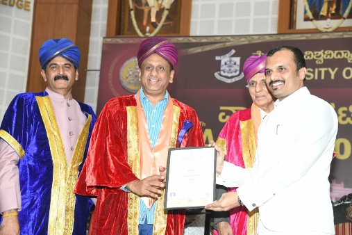 ಮೈಸೂರು: ಇಲ್ಲಿನ ಮೈಸೂರು ವಿಶ್ವವಿದ್ಯಾಲಯದ ಕ್ರಾಫರ್ಡ್ ಭವನದಲ್ಲಿ ಶನಿವಾರ ನಡೆದ 105ನೇ ಘಟಿಕೋತ್ಸವದಲ್ಲಿ ಅಪರ ಜಿಲ್ಲಾಧಿಕಾರಿ ಪಿ.ಶಿವರಾಜು ಅವರಿಗೆ ಪಿಎಚ್.ಡಿ ಪದವಿ ಪ್ರಧಾನ ಮಾಡಲಾಯಿತು.