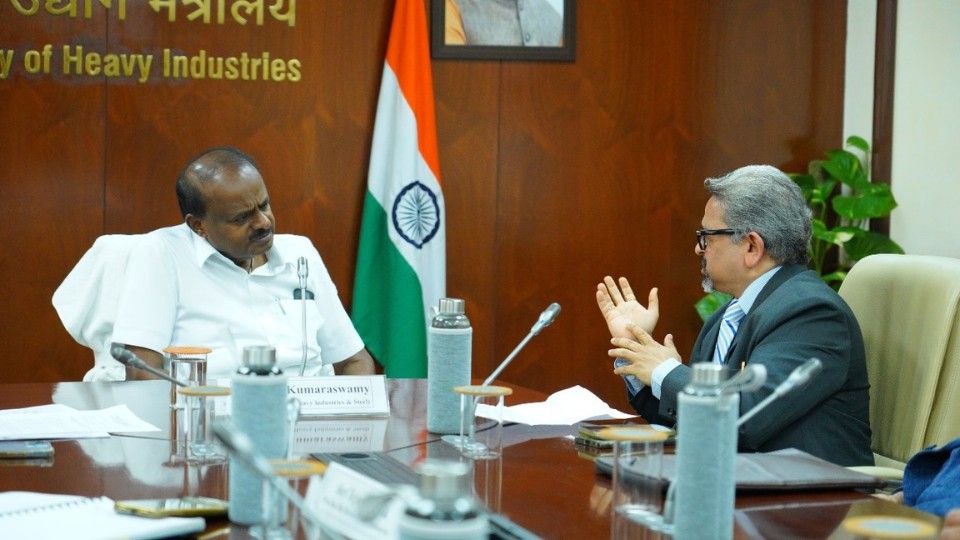 ಹೊಸದಿಲ್ಲಿ : ರಾಷ್ಟ್ರದ ಭೂಸಾರಿಗೆ ವಲಯದಲ್ಲಿ ವಾಯು ಮಾಲಿನ್ಯವನ್ನು ಗಣನೀಯವಾಗಿ ತಗ್ಗಸಿ ವಿದ್ಯುತ್ ಚಾಲಿತ ವಾಹನಗಳನ್ನು ಹೆಚ್ಚು ಉತ್ತೇಜಿಸುವ ನೀತಿ ಕುರಿತಂತೆ ಚರ್ಚಿಸಲು ಕೇಂದ್ರದ ಬೃಹತ್ ಕೈಗಾರಿಕೆ ಸಚಿವ ಎಚ್.ಡಿ.ಕುಮಾರಸ್ವಾಮಿ ಅವರನ್ನು ಇವಿ ಕ್ಷೇತ್ರದ ಖಾಸಗಿ ಪಾಲುದಾರರು ಭೇಟಿ ಮಾಡಿ ಮಹತ್ವದ ಮಾತುಕತೆ ನಡೆಸಿದರು.