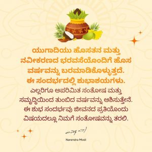 ನವದೆಹಲಿ: ಪ್ರಧಾನಿ ನರೇಂದ್ರ ಮೋದಿ ಅವರು ಯುಗಾದಿ ಹಬ್ಬಕ್ಕೆ ವಿಶಿಷ್ಟವಾಗಿ ಕನ್ನಡದಲ್ಲೇ ಶುಭ ಕೋರಿದ್ದಾರೆ.
