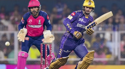 ಇಲ್ಲಿನ ಬಾರ್ಸಪರ ಕ್ರೀಡಾಂಗಣದಲ್ಲಿ ನಡೆದ ಕೆಕೆಆರ್ ಮತ್ತು ಆರ್ಆರ್ ನಡುವಣ ಪಂದ್ಯದಲ್ಲಿ ಟಾಸ್ ಸೋತು ಮೊದಲು ಬ್ಯಾಟ್ ಮಾಡಿದ ಆರ್ಆರ್ 20 ಓವರ್ಗಳಲ್ಲಿ 9 ವಿಕೆಟ್ ಕಳೆದುಕೊಂಡು 151 ರನ್ ಗಳಿಸಿತು. ಈ ಮೊತ್ತ ಬೆನ್ನತ್ತಿದ ಕೆಕೆಆರ್ 17.3 ಓವರ್ಗಳಲ್ಲಿ 2 ವಿಕೆಟ್ ಕಳೆದುಕೊಂಡು 153 ರನ್ ಗಳಿಸಿ 8 ವಿಕಟ್ಗಳ ಅಂತರದಿಂದ ಗೆಲುವು ದಾಖಲಿಸಿತು.