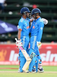 ಈ ಮೊತ್ತವನ್ನು ಚೇಸ್ ಮಾಡಿದ ಟೀಂ ಇಂಡಿಯಾಗೆ ಆರಂಭಿಕ ಆಘಾತ ಎದುರಾಯಿತು. ಅಂದುಕೊಂಡಂತೆ ಆರಂಭ ಪಡೆಯದ ಟೀಂ ಇಂಡಿಯಾ ಬಹುತೇಕ ಅತಿಥೇಯ ಪ್ರಾಬಲ್ಯಕ್ಕೆ ಸಿಲುಕಿ ಸೋಲು ಕಾಣಲಿದೆ ಎಂದು ಊಹಿಸಲಾಗಿತ್ತು. ಆದರೆ ನಾಯಕ ಉದಯ್ ಸಹರನ್ ಮತ್ತು ಮಧ್ಯಮ ಕ್ರಮಾಂಕದ ಬ್ಯಾಟರ್ ಸಚಿನ್ ದಾಸ್ ತಂಡದ ದಿಕ್ಕನ್ನೇ ಬದಲಿಸಿದರು. ಇವರಿಬ್ಬರು ಮುರಿಯದ ಜೋಡಿಯಾಗಿ 150 ರನ್ ಜೊತೆಯಾಟವಾಡಿ ತಂಡಕ್ಕೆ ಜಯ ತಂದಿಟ್ಟರು.
