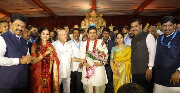 ಬೆಂಗಳೂರು: ಬಿಜೆಪಿ ಸಂಸದ ತೇಜಸ್ವಿ ಸೂರ್ಯ ಮತ್ತು ಗಾಯಕಿ ಶಿವಶ್ರೀ ಸ್ಕಂದ ಪ್ರಸಾದ್ ಆರತಕ್ಷತೆ ಸಂಭ್ರಮದಲ್ಲಿದ್ದು, ಮಾಜಿ ಸಿಎಂ ಬಿ.ಎಸ್.ಯಡಿಯೂರಪ್ಪ ಅವರ ಕುಟುಂಬ ನವ ದಂಪತಿಗೆ ಶುಭ ಹಾರೈಸಿದ್ದಾರೆ.