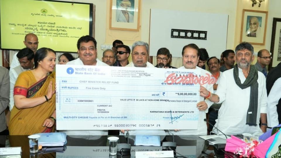 ಸಂಸ್ಥೆಯ ಪರವಾಗಿ ಬೃಹತ್ ಮತ್ತು ಮಧ್ಯಮ ಕೈಗಾರಿಕಾ ಸಚಿವ ಎಂ ಬಿ ಪಾಟೀಲ ಮತ್ತು ಕೆಎಸ್ಡಿಎಲ್ ಅಧ್ಯಕ್ಷ ಅಪ್ಪಾಜಿ ನಾಡಗೌಡ ಅವರು ಈ ಮೊತ್ತದ ಚೆಕ್ ಅನ್ನು ಮುಖ್ಯಮಂತ್ರಿ ಸಿದ್ದರಾಮಯ್ಯ ಅವರಿಗೆ ನೀಡಿದರು.