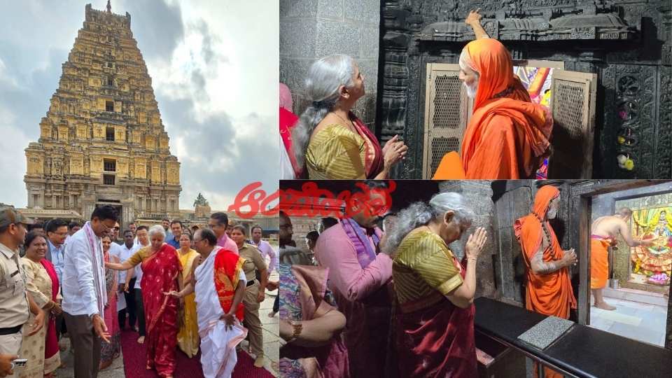 ದಕ್ಷಿಣ ಕಾಶಿ ಎಂದೂ ಕರೆಯಿಸಿಕೊಳ್ಳುವ ಹಂಪಿ ವಿರೂಪಾಕ್ಷ ದೇವಸ್ಥಾನಕ್ಕೆ ಭೇಟಿ ನೀಡಿದ ನಿರ್ಮಲಾ ಸೀತಾರಾಮನ್ ಅವರು ಹಂಪಿಯ ಆನೆ ಲಕ್ಷ್ಮೀಯಿಂದ ಆಶೀರ್ವಾದ ಪಡೆದುಕೊಂಡರು.
