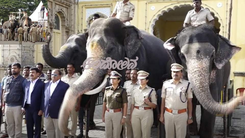 ಮೈಸೂರು: ವಿಶ್ವವಿಖ್ಯಾತ ನಾಡಹಬ್ಬ ಮೈಸೂರು ದಸರಾ ಮಹೋತ್ಸವದ ಅಂಗವಾಗಿ ಇಂದು ಅರಮನೆ ಆವರಣದಲ್ಲಿ ಜಂಬೂಸವಾರಿ ರಿಹರ್ಸಲ್‌ ನಡೆಸಲಾಯಿತು. ವಿಶ್ವವಿಖ್ಯಾತ ನಾಡಹಬ್ಬ ಮೈಸೂರು ದಸರಾ ಮಹೋತ್ಸವದ ಅಂಗವಾಗಿ ಇಂದು ಮೈಸೂರು ಅರಮನೆ ಆವರಣದಲ್ಲಿ ದಸರಾ ಆನೆಗಳು ಹಾಗೂ ಅಶ್ವಾರೋಹಿ ಪಡೆಗೆ ರಿಹರ್ಸಲ್‌ ನಡೆಸಲಾಯಿತು. …