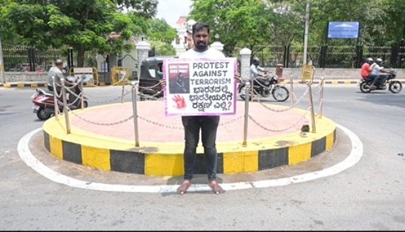 ಮೈಸೂರು: ಜಮ್ಮು-ಕಾಶ್ಮೀರದ ಪಹಲ್ಗಾಮ್ನಲ್ಲಿ ಪ್ರವಾಸಿಗರನ್ನೇ ಗುರಿಯಾಗಿಸಿಕೊಂಡು ಉಗ್ರರು ಗುಂಡಿನ ದಾಳಿ ನಡೆಸಿರುವ ಪ್ರಕರಣ ಖಂಡಿಸಿ ಮೈಸೂರಿನ ವಿಜಯನಗರದ ನಿವಾಸಿ ಕಾರ್ತಿಕ್ ಎಂಬುವವರು ಏಕಾಂಗಿ ಪ್ರತಿಭಟನೆ ನಡೆಸಿದ್ದಾರೆ. ನಗರದ ಜಿಲ್ಲಾ ನ್ಯಾಯಾಲಯದ ಮುಂಭಾಗ ಇರುವ ಮಹಾತ್ಮ ಗಾಂಧಿ ಪುತ್ಥಳಿ ಬಳಿ ಪ್ರತಿಭಟನೆ ಹಮ್ಮಿಕೊಂಡಿದ್ದ …