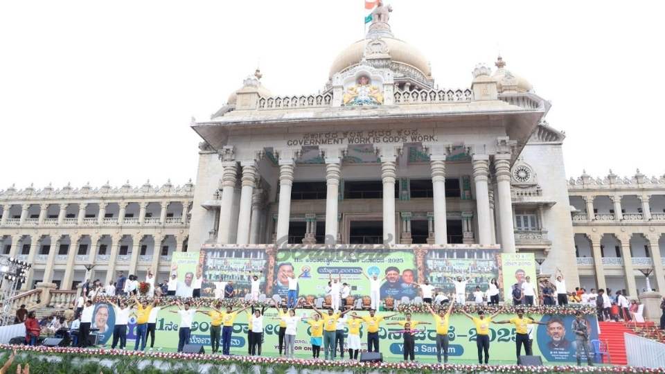 ಬೆಂಗಳೂರು: 11ನೇ ಅಂತರಾಷ್ಟ್ರೀಯ ಯೋಗ ದಿನಾಚರಣೆಯ ಹಿನ್ನೆಲೆಯಲ್ಲಿಂದು ವಿಧಾನಸೌಧದ ಎದುರು ಸಾವಿರಾರು ಯೋಗಪಟುಗಳಿಂದ ಯೋಗಾಭ್ಯಾಸ ಮಾಡಿದರು. ಬೆಂಗಳೂರಿನ ವಿಧಾನಸೌಧದ ಮುಂಭಾಗದಲ್ಲಿಂದು ಸಾವಿರಾರು ಯೋಗಪಟುಗಳಿಂದ ಯೋಗಾಭ್ಯಾಸ ನಡೆಯಿತು. ಆಯುಷ್ ಇಲಾಖೆಯಿಂದ ಆಯೋಜಿಸಿದ್ದ ಕಾರ್ಯಕ್ರಮದಲ್ಲಿ ರಾಜ್ಯಪಾಲ ಥಾವರ್ ಚಂದ್ ಗೆಹ್ಲೋಟ್, ಆರೋಗ್ಯ ಸಚಿವ ದಿನೇಶ್ …